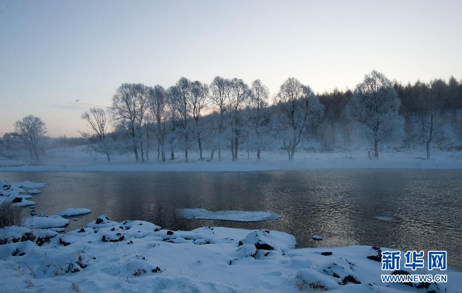 这是内蒙古阿尔山冬季不冻河雾凇景观(12月13日摄)。时值冬季,内蒙古大兴安岭西南山麓的阿尔山林海银装素裹,美景如画。 新华社记者 李任滋 摄