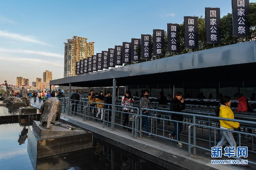 12月14日,观众排队进入侵华日军南京大屠杀遇难同胞纪念馆参观。新华社记者 沈鹏 摄