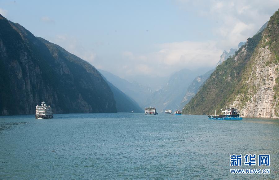 2014年11月6日,轮船在巫峡的江面上行驶。 新华社记者 孟涛 摄