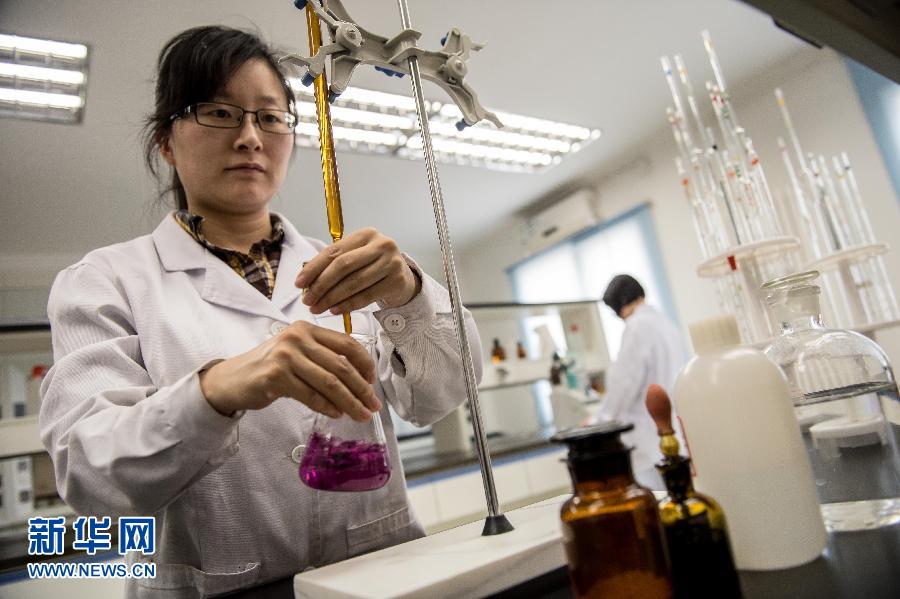 这是北京市南水北调水质监测中心的工作人员在实验室对水样进行检测(4月14日摄)。 新华社记者张宇摄