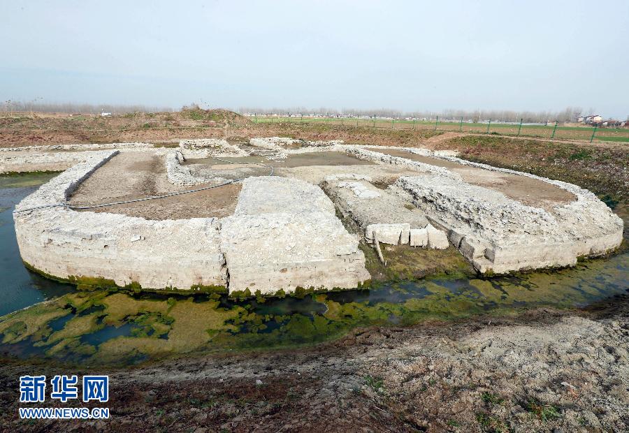 这是12月19日在江苏省盱眙县淮河镇城根村拍摄的考古人员发掘出的古泗州城一角。当日,来自全国各地的文物考古专家、学者汇聚江苏省淮安市盱眙县,对盱眙境内的泗州城遗址考古发掘、文物保护工作进行研讨,一大批珍贵的文物与各地的专家学者见面。因洪水肆虐而被深埋水下330多年的“东方庞贝”泗州城,经过南京博物院考古所三年多的考古发掘,已确定了古泗州城遗址范围,一大批珍贵的文物“重见天日”。新华社发(周海军 摄)