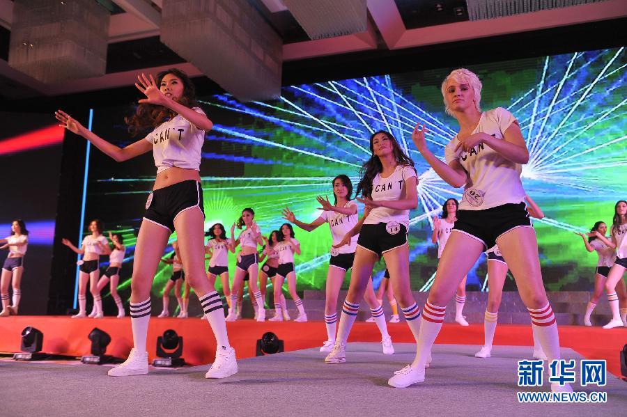 12月17日,参赛模特在比赛现场进行展示。当日,“新风尚·中国车模国际交流赛暨2014汽车模特新星全国选拔赛总决赛”在北京举行,来自全国32个分赛区的冠军齐聚北京,与15名来自法国、乌克兰等国家的外国模特同台比拼。新华社记者鲁鹏摄