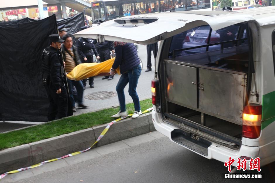 12月20日下午,成都一位20多岁的女子从春熙路北口人行天桥跳下,坠落到总府路主道上,当场身亡。事件发生后,引来大批围观民众,随后当地警方封锁了人行天桥和事发现场,目前身亡女子遗体已被运走,相关原因警方正在调查。图为女子遗体被运走后,人行天桥恢复通行,现场血迹被清洗。张浪 摄
