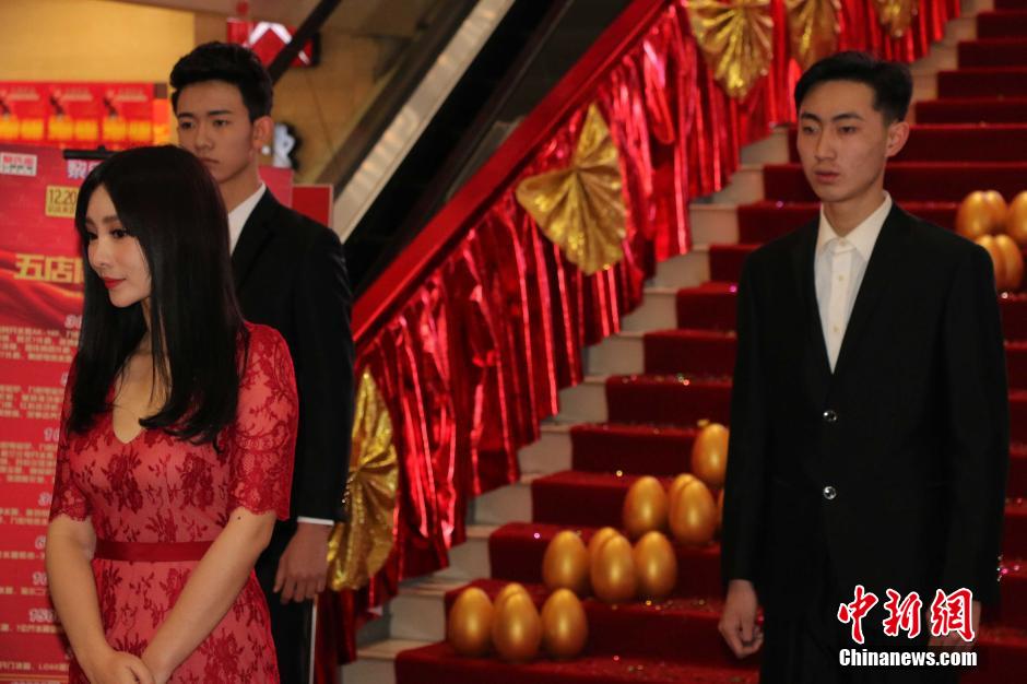 12月20日,艺人柳岩冬日现身太原,为某店庆助阵。尽管当日气温已在零度以下,室内气温也并不高,柳岩仍然身着一席低胸长裙,赚足了观众的眼球。图为柳岩在两名工作人员的陪同下等待入场。胡健 摄