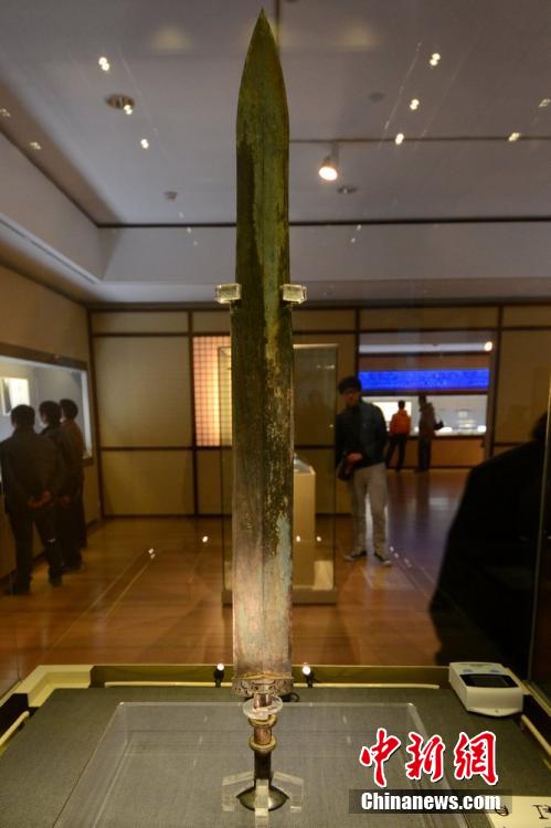 12月19日,“吴钩重辉——苏州博物馆藏吴越青铜兵器特展”在苏州博物馆举办,展览分“吴越争辉”、“耕战并举”、“礼乐化民”、“金戈铁马”四个主题,集中展出吴越地区出土文物达140件/套,展现了“吴越铸剑”的传承源流和高超工艺。图为观众被展出的吴王夫差剑所吸引。 王思哲 摄