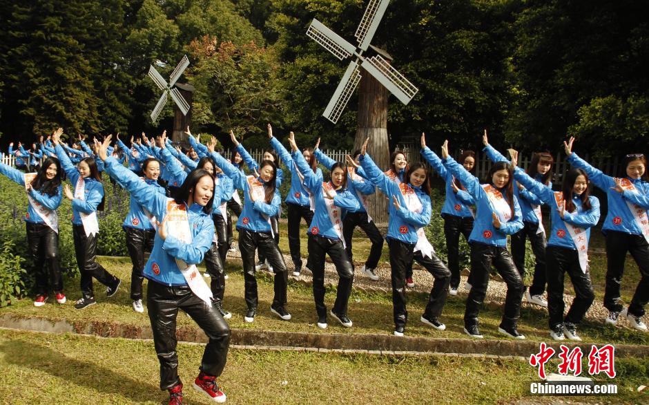 12月18日,正在广州参加美丽之冠2014世界休闲小姐大赛中国年度总决赛的70个城市的佳丽,在广州参加婚纱秀、车展、游览珠江等系列拍摄及公益活动。图为参赛佳丽展示风采。 中新社发 钱兴强 摄