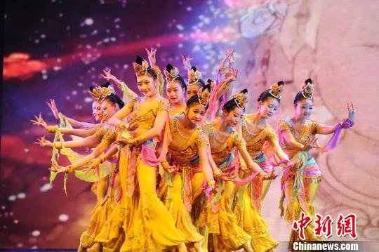 12月18日晚,敦煌壁画舞姿与西方芭蕾舞同时亮相兰州舞台,这场中西方舞蹈艺术“碰撞”的视觉盛宴令人如痴如醉。图为群舞《敦煌天女》表演。 杨艳敏 摄