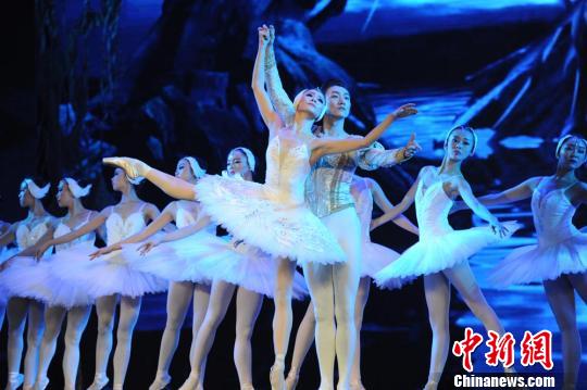 12月18日晚,敦煌壁画舞姿与西方芭蕾舞同时亮相兰州舞台,这场中西方舞蹈艺术“碰撞”的视觉盛宴令人如痴如醉。图为芭蕾舞《天鹅湖》表演。 杨艳敏 摄