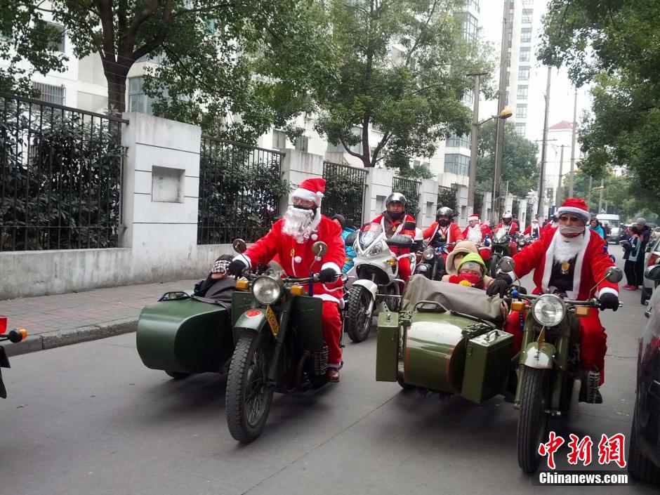 12月21日,圣诞老人骑行公益行动在上海举行,30多位来自社会各行业的青年骑士们,穿上圣诞老人服装,带着礼物,发动各自的边三轮摩托,来到自闭症儿童学校,载着孩子们行游上海滩,用他们的实际行动,演绎了“圣诞骑士爱心飞驰,自闭儿童和爱同行”欢乐圣诞之旅。潘索菲 摄