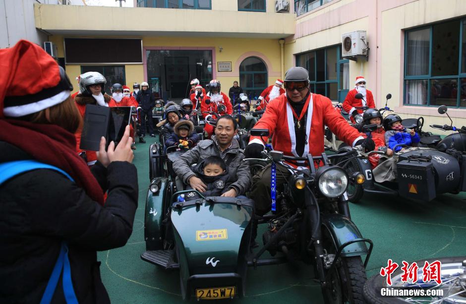 12月21日,圣诞老人骑行公益行动在上海举行,30多位来自社会各行业的青年骑士们,穿上圣诞老人服装,带着礼物,发动各自的边三轮摩托,来到自闭症儿童学校,载着孩子们行游上海滩,用他们的实际行动,演绎了“圣诞骑士爱心飞驰,自闭儿童和爱同行”欢乐圣诞之旅。潘索菲 摄