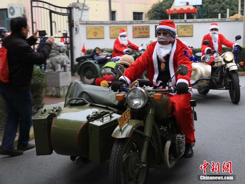 12月21日,圣诞老人骑行公益行动在上海举行,30多位来自社会各行业的青年骑士们,穿上圣诞老人服装,带着礼物,发动各自的边三轮摩托,来到自闭症儿童学校,载着孩子们行游上海滩,用他们的实际行动,演绎了“圣诞骑士爱心飞驰,自闭儿童和爱同行”欢乐圣诞之旅。潘索菲 摄