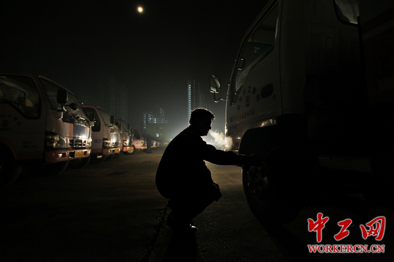 清洁和检查车辆是任晓云每天早晨到公司做的第一件事,任晓云说,“车就像一面镜子,很多人都认为垃圾车就应该是脏的,但是我希望我的车是最干净的、体面的。”公司里有三辆车的方向盘没有助力,他的车是其中之一。“这车我开了11年,就像我的兄弟,有了感情,舍不得换。”任晓云边擦车边说。中工网记者韩靖摄