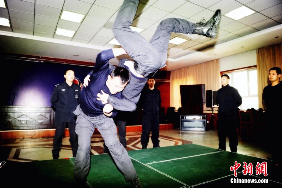 图为特战队员进行日常擒拿格斗训练,提高特战队员快速反应能力。 李国贤 摄