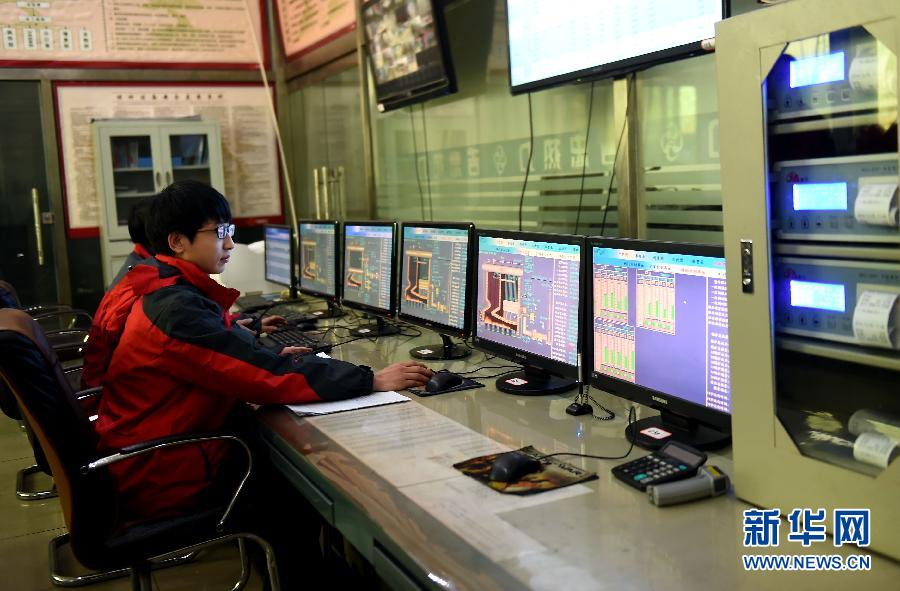 12月21日,白沟吉忠热力有限公司工作人员在主控室监控供暖设备运行情况。河北省保定市白沟新城自2010年以来开展集中供热工程建设,引进民间资本成立白沟吉忠热力有限公司,目前实现集中供热面积1500万平方米,年节约用水18.06万吨,节约电力1986万千瓦时,减少烟尘排放量7720吨,二氧化碳排放量390吨,有效提高了能源利用率,减轻大气污染,改变了过往小锅炉遍地、小烟囱林立的污染情况。新华社记者金良快摄