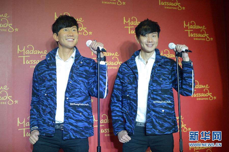 12月22日,在新加坡圣淘沙岛的杜莎夫人蜡像馆,新加坡歌手林俊杰(右)与自己的蜡像合影。当日,林俊杰蜡像亮相新加坡圣淘沙岛杜莎夫人蜡像馆。 新华社发(邓智炜摄)