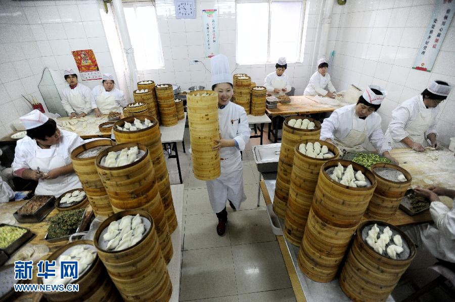 12月22日,在有着180余年历史的沈阳老边饺子馆,工作人员在赶制冬至饺子。当日是二十四节气中的冬至,我国北方有“过冬至,吃饺子”的习俗。 新华社发(张文魁 摄)