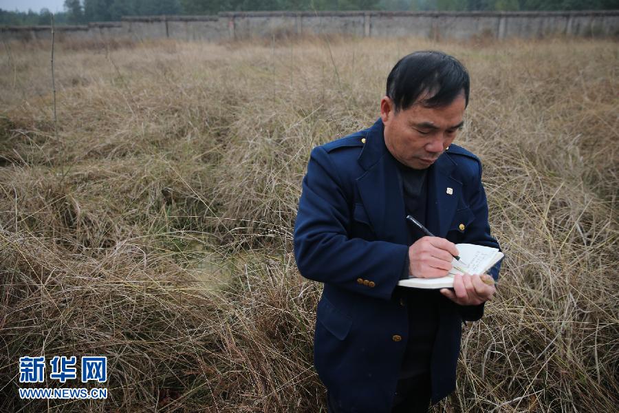 野生稻发现人、东乡野生稻管理办公室负责人饶开喜在记录野生稻的相关数据(12月10日摄)。打开铁门进去,走过一段20米长的水泥路,眼前一片“杂草丛生”,和沿“草”而生的弯曲田埂,与农民辛勤耕耘的规整稻田景象完全不同。这些“杂草”是国家二级保护植物,30多年前已被水稻专家鉴定为世界最北最耐寒的野生稻。从本世纪初濒危时的1.5亩到现在的28.9亩的生长面积,从当初小面积种树保护到现在140亩范围的围墙保护,位于江西省东乡县樟塘村的这片世界最北野生稻在保护中生生不息。新华社发(万象 摄)