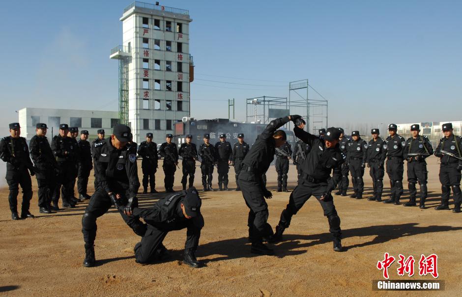 内蒙古巴彦淖尔市临河区公安局组织特警冒着严寒开展野外拉练,先后在临河区主要街道、重点防控单位、公园、黄河堤防公路等地进行了抓捕、狙击、禁毒、公路巡逻和擒拿格斗等训练。乌娅娜 摄