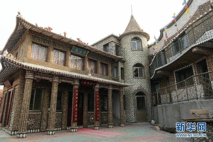 在山东青岛黄岛区灵山岛上,有一座引人注目的“贝壳楼”。该楼由岛上居民肖永生精心打造而成,小楼的装潢用了500多个品种的100多万枚贝壳。2014年6月中旬,“贝壳楼”作为展览场所对外开放,展出肖永生收集的1000多件反映海岛居民生活的物品。新华社发(俞方平 摄)