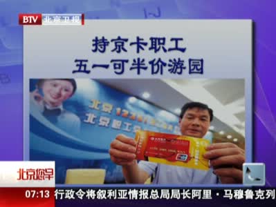本报讯(记者左颖)由市总工会推出的首都职工“五一”假日文化系列活动今天亮相。活动期间,公园面向全市持京卡·互助服务卡职工,实行门票半价优惠。同时职工持“京卡”还可以享受文化互动、健身体检、看电影、阅读、学习等多重优惠。今年市总工会把职工的身体健康和子女的科学教育列入了活动当中。首次与北京康复医院共同推出假日门诊、免费挂号就医、常见病筛查、康复治疗与免费培训等4项服务。