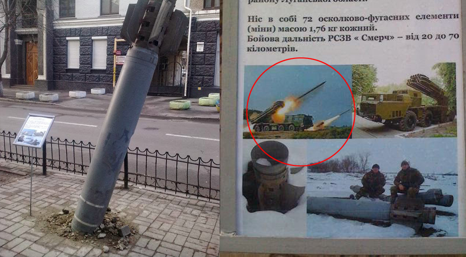 这是摄于乌克兰东部卢甘斯克附近的一张照片,一枚没有爆炸的远程火箭炮炮弹直接插入了地面,成为了一处景点,旁边还配有一个展板。展板上的信息对此枚火箭弹的来源做了说明,指出其可能是来自俄罗斯研制的“龙卷风”远程火箭弹武器系统,但配图中出现了一张疑似中国军队300毫米远程火箭炮发射的画面。来源:环球网