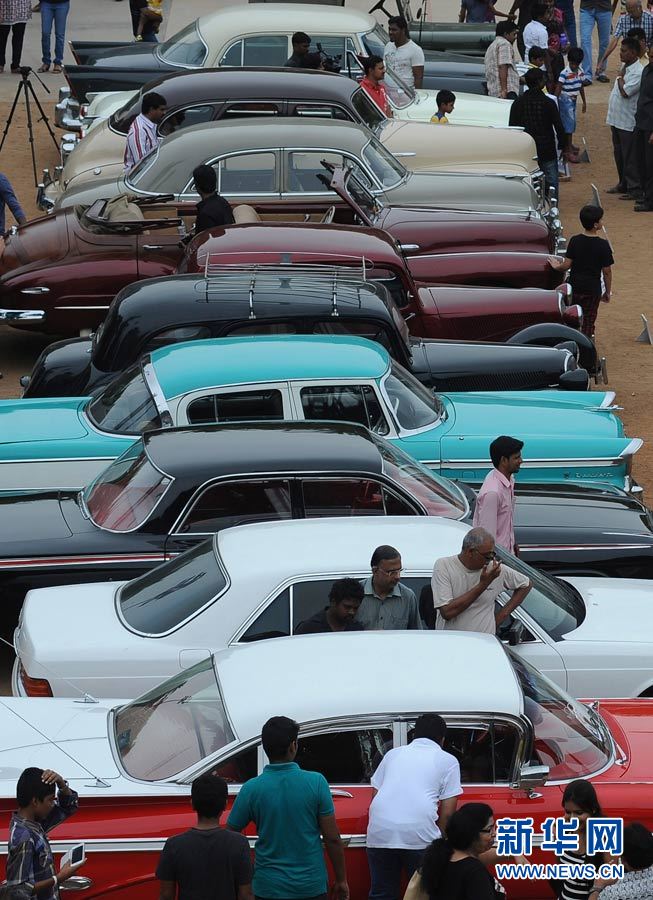 8月24日,在印度金奈,人们在纪念金奈建城375年的活动上参观古董车。 新华社/美联