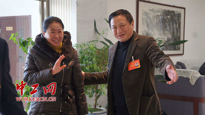 图为丰台区工会主席王建斌正在迎接参会代表入场。中工网记者 葛姗 摄