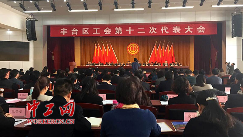 2014年12月29日,上午10点,丰台区工会第十二次代表大会在双拥大厦会议厅隆重开幕。231名全区各行各业工会代表、30名列席代表和14名特邀代表参加了开幕式。中工网记者 葛姗 摄