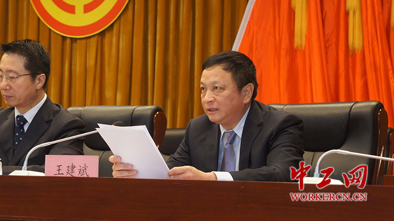 丰台区总工会主席王建斌代表丰台区第十一届总工会委员会做了题为《强基固本 改革创新 提升服务 团结动员全区广大职工为建设繁荣文明幸福新丰台而努力奋斗》的工作报告。中工网记者 葛姗 摄