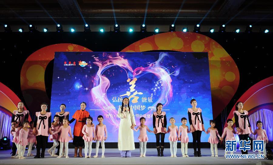 12月29日,善基金发起人金树萍(中)和小演员出席晚会。当日,“智在·善之夜”公益慈善晚会在北京钓鱼台国宾馆举行,中国人口福利基金会善基金携手近千名企业家、艺术家、广大爱心人士和社会团体,通过慈善义卖的方式,共同为孤儿、孤老、孤残等弱势群体提供救援和帮助。新华社记者马研摄