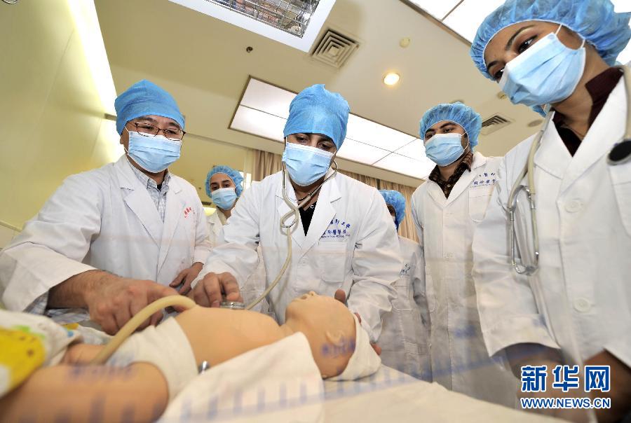 12月29日,天津医科大学国际学院副院长韩霏(左一)在模拟医院产房实验室为留学生授课。天津医科大学从20世纪80年代起开展留学生教育,成立国际学院,并建成全国首家旨在培养医学留学生临床技能与实践操作能力的英文模拟医院。从最初的30多名在校留学生发展到现在的1468名。多年来,天津医科大学先后培养了近4000名“洋医生”回国从事医务工作,天津医科大学培养的毕业留学生在执业医师执照考试中的整体通过率远高于其所在国平均通过率,许多外国留学生慕名来天津学医。新华社记者岳月伟摄
