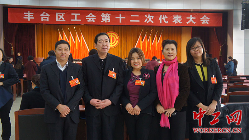 图为丰台区工会第十二次代表大会闭幕后,参会代表在会场拍照留念。