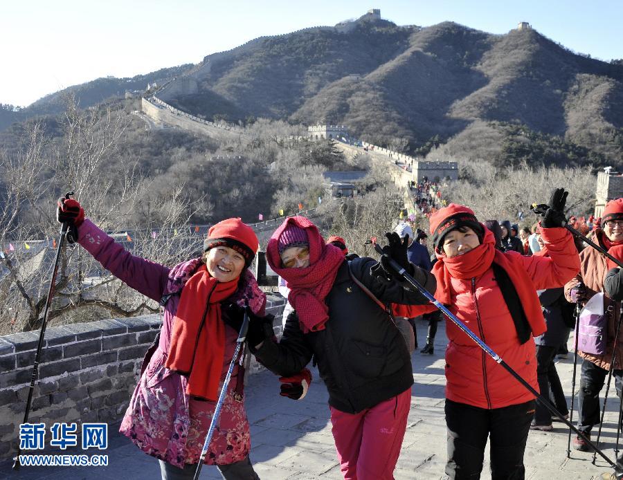 1月1日,北京市民冒着严寒攀登长城。当日,2015全国新年登高健身活动在国内22个省市区同时开展,2022名北京市民以及众多国内外游客在北京延庆县八达岭长城参加主会场的徒步攀登长城活动,助力北京和张家口申办2022年冬奥会。新华社记者李欣摄