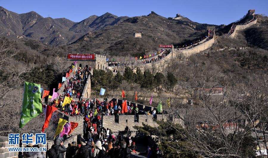 1月1日,北京市民和各地游客参加徒步攀登长城活动。当日,2015全国新年登高健身活动在国内22个省市区同时开展,2022名北京市民以及众多国内外游客在北京延庆县八达岭长城参加主会场的徒步攀登长城活动,助力北京和张家口申办2022年冬奥会。新华社记者李欣摄