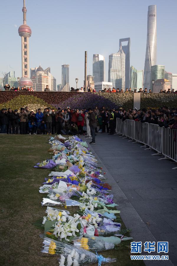 1月1日,一些市民在上海外滩献花。当日,一些上海市民到外滩陈毅广场献花,祭奠踩踏事故中的遇难者。 新华社记者 金立旺 摄