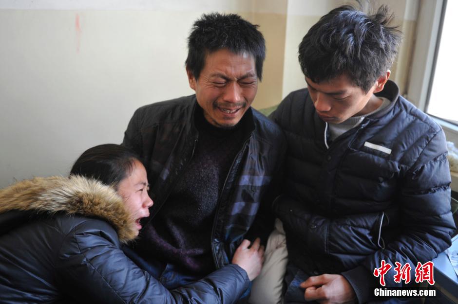 12月30日,针对山西省太原市小店区发生的“12.13”——太原市公安局小店分局龙城派出所民警在处置“龙瑞苑”工地纠纷警情期间,发生一起河南女农民工非正常死亡案件,太原市人民检察院当日在其官方网站发布消息称,该院已对涉案民警王某以涉嫌滥用职权罪批准逮捕。目前,案件侦查工作仍在依法进行中。图为死者周秀云的丈夫王友志与女儿王倩、儿子王奎林在谈及周秀云非正常死亡时痛哭流泪。韦亮 摄