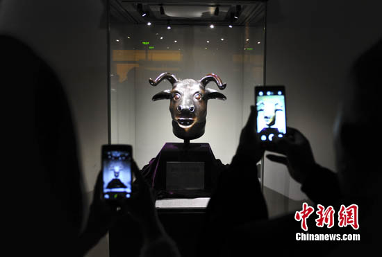 12月30日,游人观赏兽首。中新社发 张勇 摄