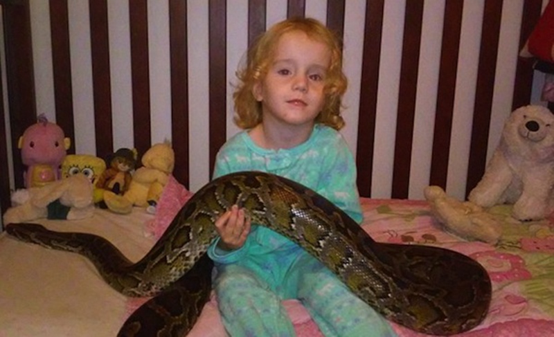 美国父亲让巨蟒和女儿们共舞(视频截图)