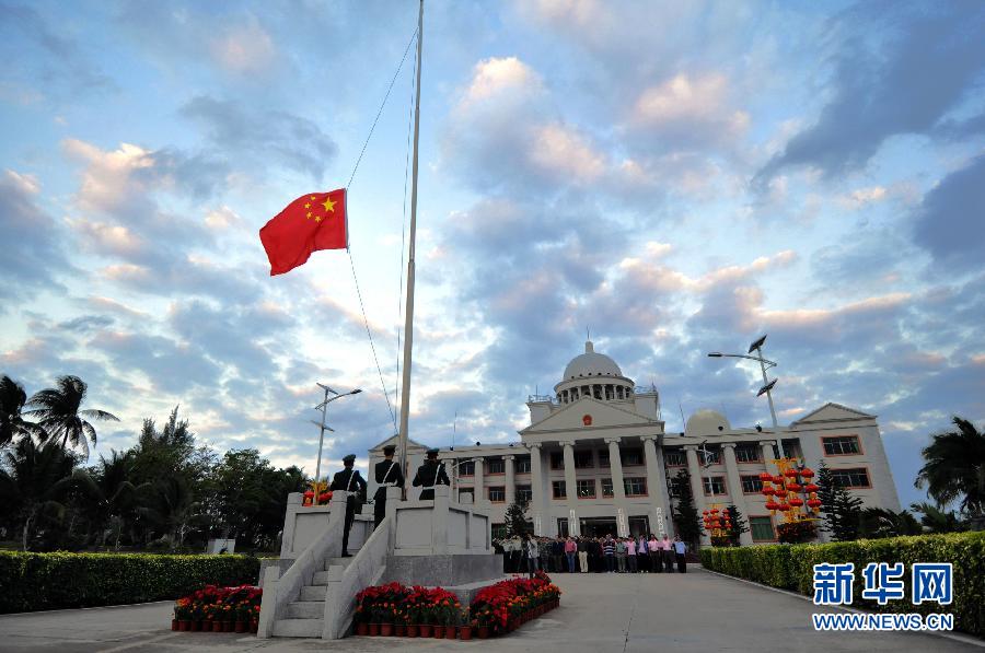 2015年1月1日,海南省三沙市在永兴岛市政广场举行升国旗仪式,迎接2015年的到来。 新华社记者夏一方摄