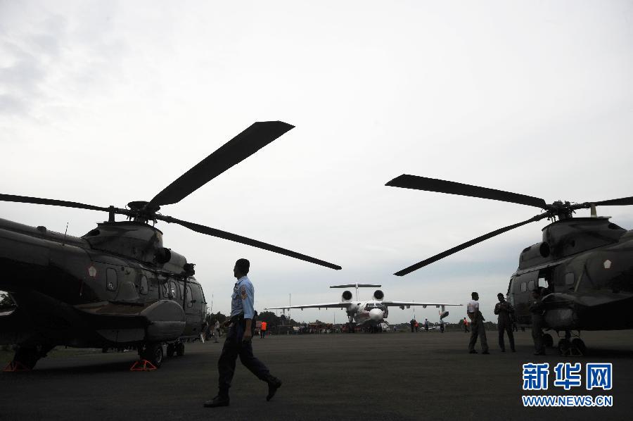 1月3日,在印度尼西亚庞卡兰布翁,搜救飞机准备执行任务。印度尼西亚气象、气候和地球物理局4日发布报告说,基于既有有效数据,该机构认为天气是导致亚航QZ8501航班客机失事的“诱发因素”。新华社发(阿贡摄)