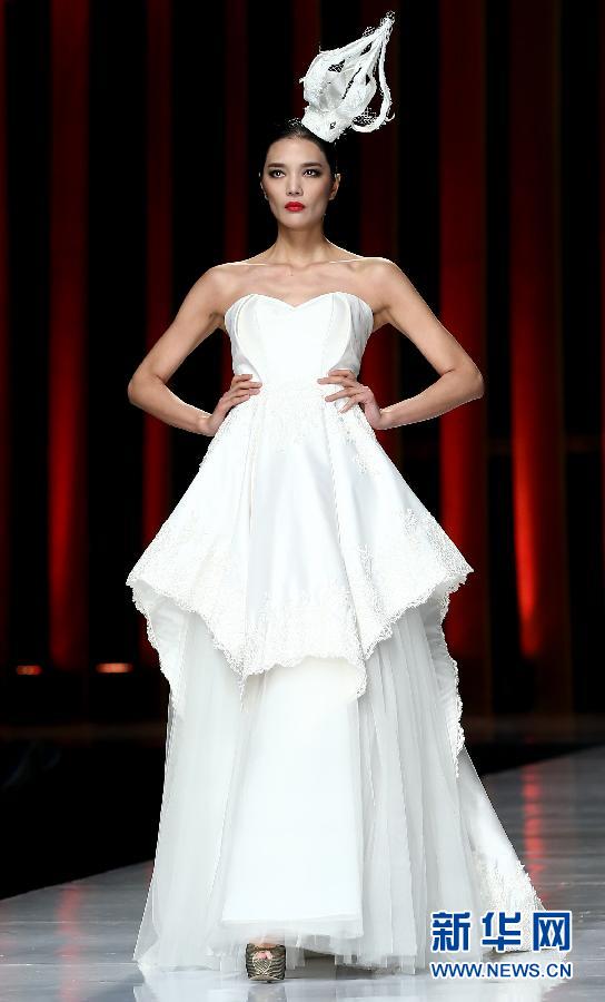 1月3日,模特展示马来西亚时装设计师Carven Ong的时装作品。 1月3日,首届中国—东盟时装周继续在广西南宁举行,上演马来西亚时装设计师Carven Ong的高级婚纱礼服时装秀。新华社记者陈建力摄