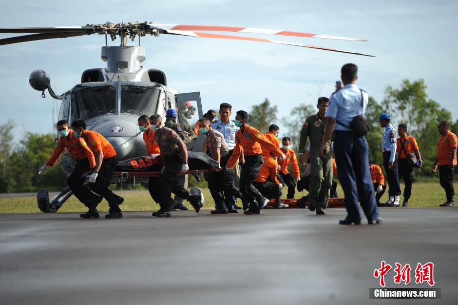 1月2日,美国空军当天派出军用直升飞机参与了从失事海域到庞卡兰布翁机场的遗体运送。印尼当天共出动了17架飞机、29艘船只和57人组成的海军蛙人部队前往失事海域搜救。截止2日,印尼共打捞出失事亚航飞机上22具遇难者遗体。顾时宏 摄