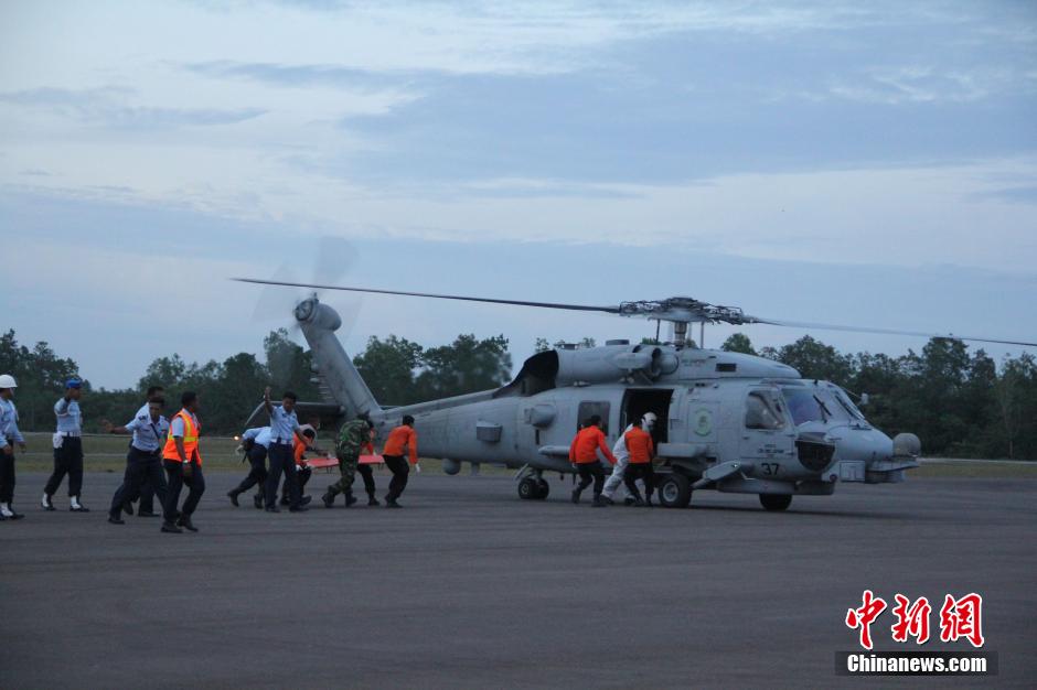 1月2日,美国空军当天派出军用直升飞机参与了从失事海域到庞卡兰布翁机场的遗体运送。印尼当天共出动了17架飞机、29艘船只和57人组成的海军蛙人部队前往失事海域搜救。截止2日,印尼共打捞出失事亚航飞机上22具遇难者遗体。顾时宏 摄