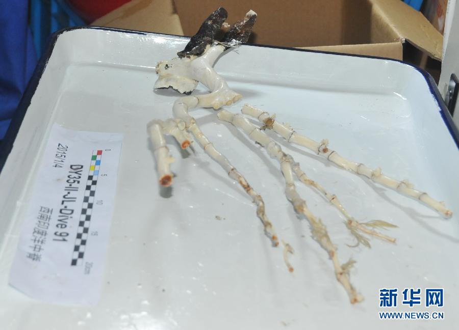 这是“蛟龙”号载人潜水器采集到的珊瑚(1月4日摄)。