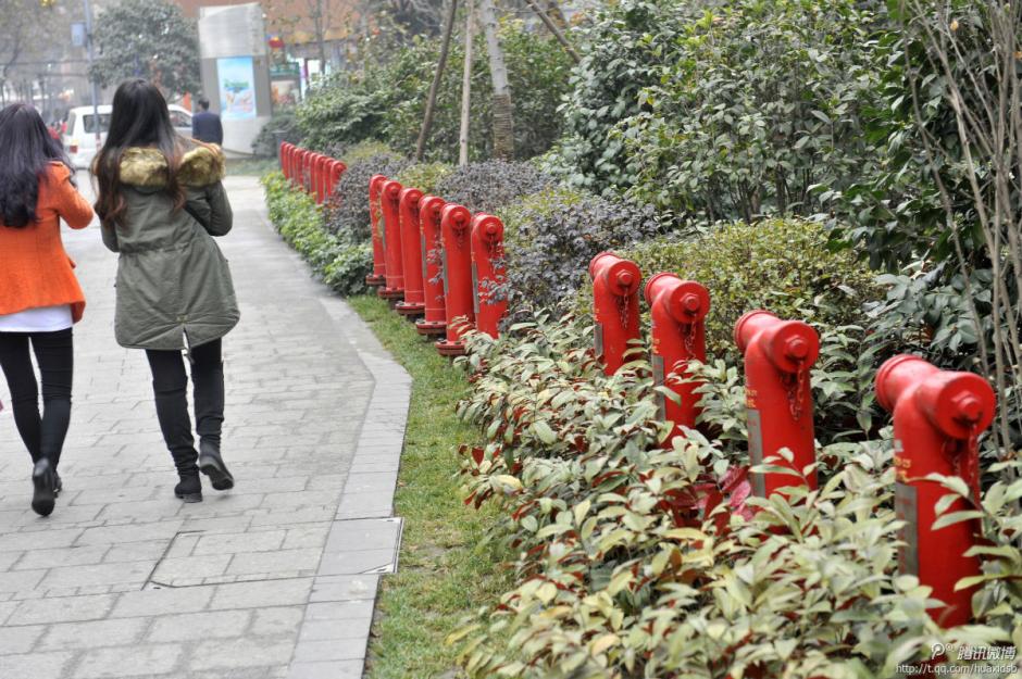 成都街头22个消防栓一字排开