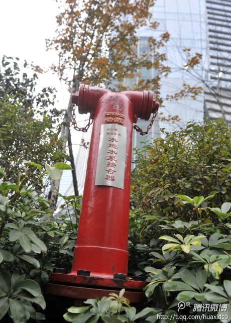 2015年01月5日,四川省成都市街头,22个消防栓一字排开,气势逼人。原来这些消防栓是为保护一栋写字楼而设。图片来源:华西都市报官方微博