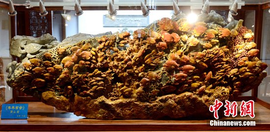 据介绍,寿山高山石圆雕作品《年年有余》长2.15米,宽0.65米,高0.85米为全国最大的寿山石圆雕作品。