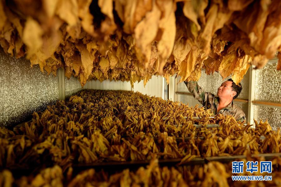 一名技术人员在湖北省宣恩县罗圈岩村烟叶集中烘烤点检查烘烤质量(2014年7月30日摄)。据国家发展改革委消息,自2015年起国家放开烟叶收购价格。由于烟叶收购价是农产品领域最后一个实行政府定价的品种,此举标志着我国农产品价格将全部由市场形成,政府定价彻底退出历史舞台。新华社发(宋文 摄)