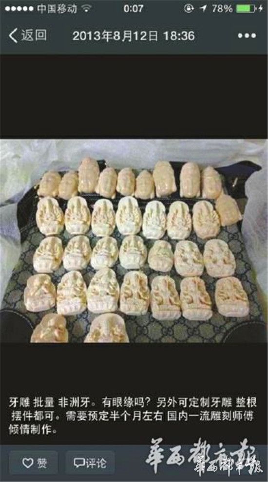 去年7月,福建省莆田市仙游县森林公安查获一起非法购买及销售犀牛角制品、象牙制品、盔犀鸟头冠骨制品的窝点,这些工艺品被销往全国20个多地区,该案的犯罪嫌疑人陈勇正是杨晓晓的供货商。