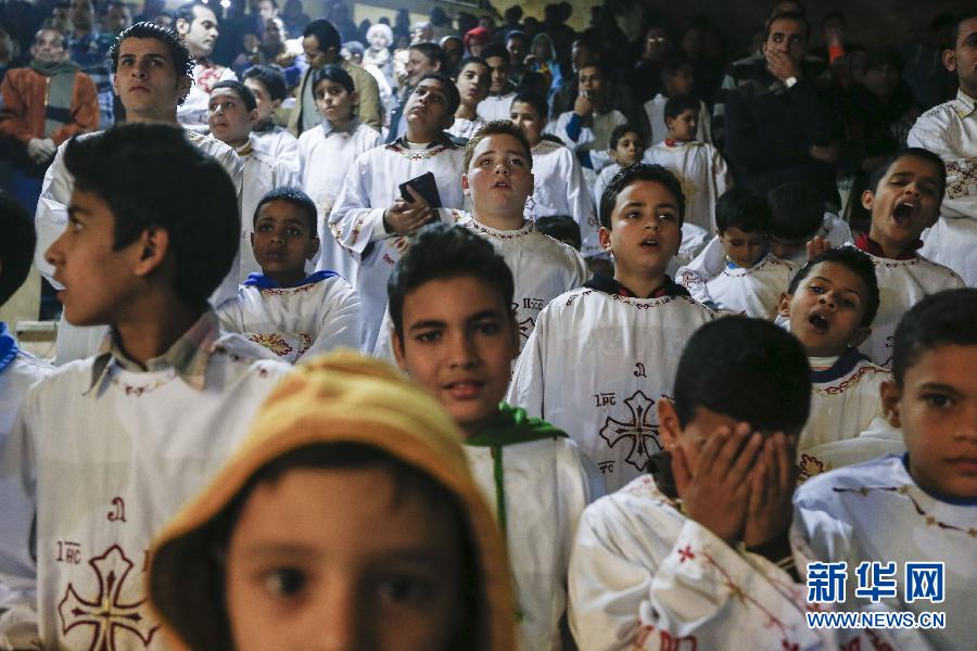 1月6日,在埃及首都开罗的一座科普特教堂,科普特儿童参加东正教圣诞节庆祝活动。 埃及科普特人按照儒略历法,于1月7日迎来东正教圣诞节。新华社记者崔新钰摄